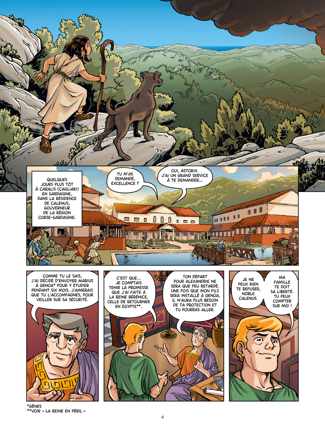 Le gouverneur de Sardaigne Calenus envoie son fils Marius, âgé de dix ans, à Genoa pour étudier pendant six mois, au grand dam de sa mère Caecilia. Pour veiller à sa sécurité, il demande à Astorix de l’accompagner et donc de repousser son voyage à Alexandrie. Ne pouvant rien refuser au gouverneur en regard de ce qu’il a fait pour sa famille, Astorix accepte. Marius, quant à lui, insiste pour qu’Alix soit du voyage. En chemin, leur navire est pris dans un ouragan qui oblige le capitaine à mettre le cap sur Corsica afin d’essayer d’atteindre le port d’Aléria. Après un épisode mouvementé, l’équipage atteint une crique sur la côte qu’il découvre ravagée par les flammes d’un feu de maquis. Sur la plage se trouve une jeune bergère qui cherche à rejoindre son village pour y retrouver sa famille. Alix et Marius décident de l’aider, obligeant Astorix à les suivre. Ainsi, ils traversent un paysage dévasté et sont confrontés à une nature des plus hostiles avec ses dangers de diverses origines. Cependant, le plus périlleux d’entre eux pourrait s’avérer être le magistrat suprême de l’île, Sulburnus.