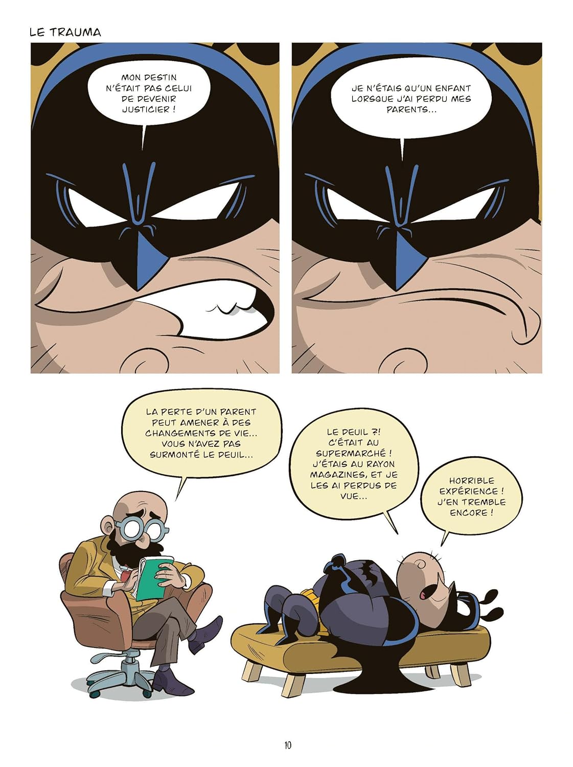 Pas simple de parodier un célèbre personnage, certains s’y sont déjà cassés les dents en beauté mais ici Synne et Lapuss’ ont trouvé le petit truc en plus pour faire marrer les lecteurs. Les gags se succèdent dans la bonne humeur. Que ce soit des gags faciles ou d’autres plus élaborés, on adhère illico. Il faut dire que le duo de scénaristes n’est pas néophyte dans le domaine et possède une expérience fortement recommandée pour ce type d’exercice. Pour mettre en images leurs gags, Liroy s’en charge avec brio, en faisant passer le pseudo Batman pour un ringard un peu neuneu indispensable pour le résultat recherché. Les personnages de cet album ont la gueule de l’emploi, la connerie n’est jamais très loin, parfois au coin d’une page, d’autres fois bien plus proches que cela. Le trio d’auteurs joue avec les codes de l’univers de Batman et le revisite pour le meilleur du rire.