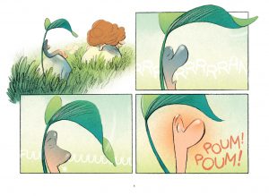 Tranquillement installé sur l’herbe près de Paillasson, le ver est dérangé par un bruit. Il entend comme un « poum, poum » qui vient de son ami ! Effectivement, le hérisson est bien la source de cet étrange bruit, par les battements de son cœur. Le choupisson est tout simplement tombé amoureux d’une hérissonne qu’il n’ose pas approcher et encore moins à qui parler. Il envisage de changer de coiffure mais la taupe la rate totalement. Heureusement qu’à ses cotés veille un très bon ami qui sait trouver les mots qui rassurent.
