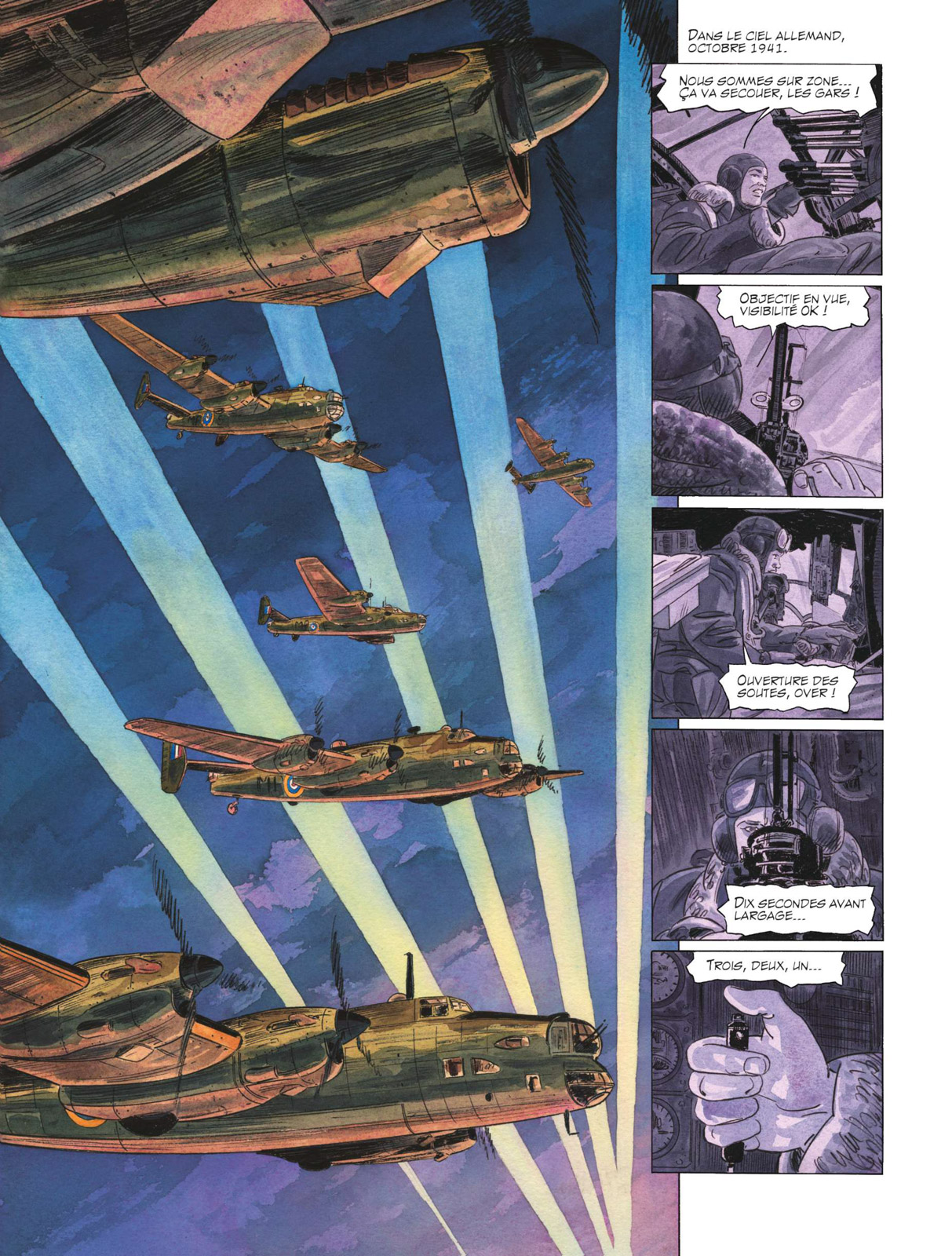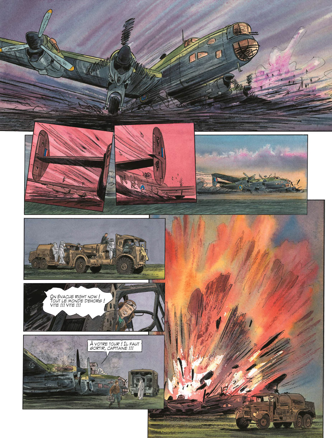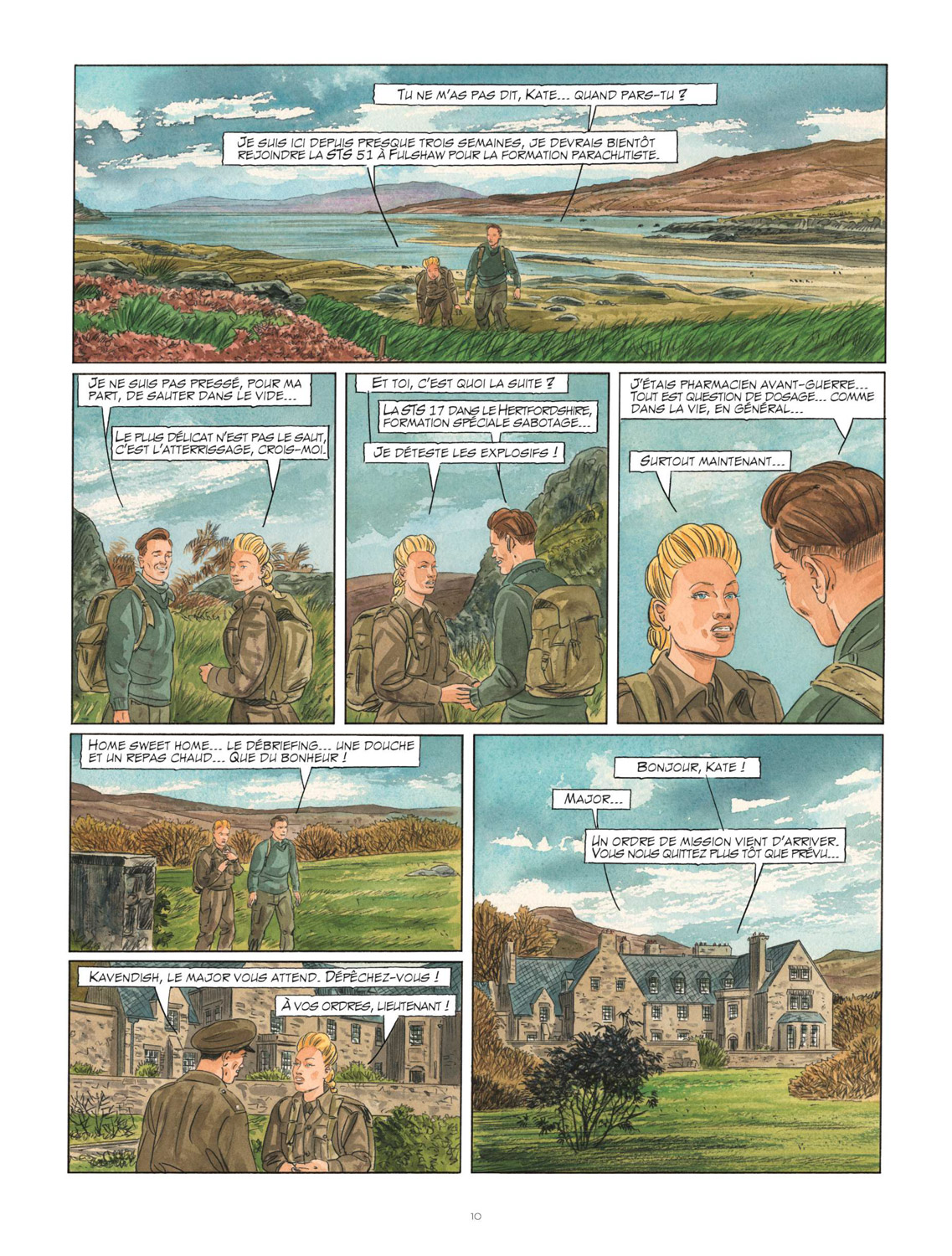 Éric Warnauts poursuit le développement des destinés des personnages qu’il a imaginés. Si le focus est toujours orienté sur Kate et son évolution au sein du S.O.E., le scénariste n’oublie pas de fixer un temps l’attention des lecteurs sur d’autres protagonistes, comme Jimmy, qui a été promu “squadron leader”, ou Nicole, aux petits soins de Béata et tante Beth. Ce qui les surprendra le plus est cette idée d’envoyer l’héroïne dans les Ardennes belges à l’Hôtel des Roches où elle va croiser les acteurs d’une autre série du duo, Les Temps Nouveaux. Cela met en place un maillage inattendu mais très efficace qui laisse à penser que cela pourrait – pourquoi pas ? – se reproduire par la suite. Bien entendu, cet épisode contient son lot de combats aériens spectaculaires, une manne pour Éric Warnauts et Raives qui permet d’en mettre plein les yeux mais aussi de trancher avec les temps plus calmes où les séquences sont faites de rencontres et de discussions enrichissant la trame scénaristique. La mise en couleurs directes de Raives parachève le tout avec classe et énergie.