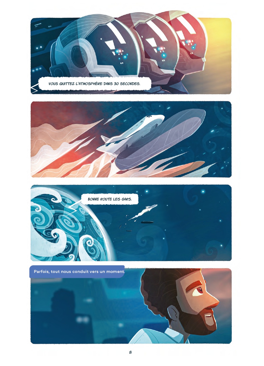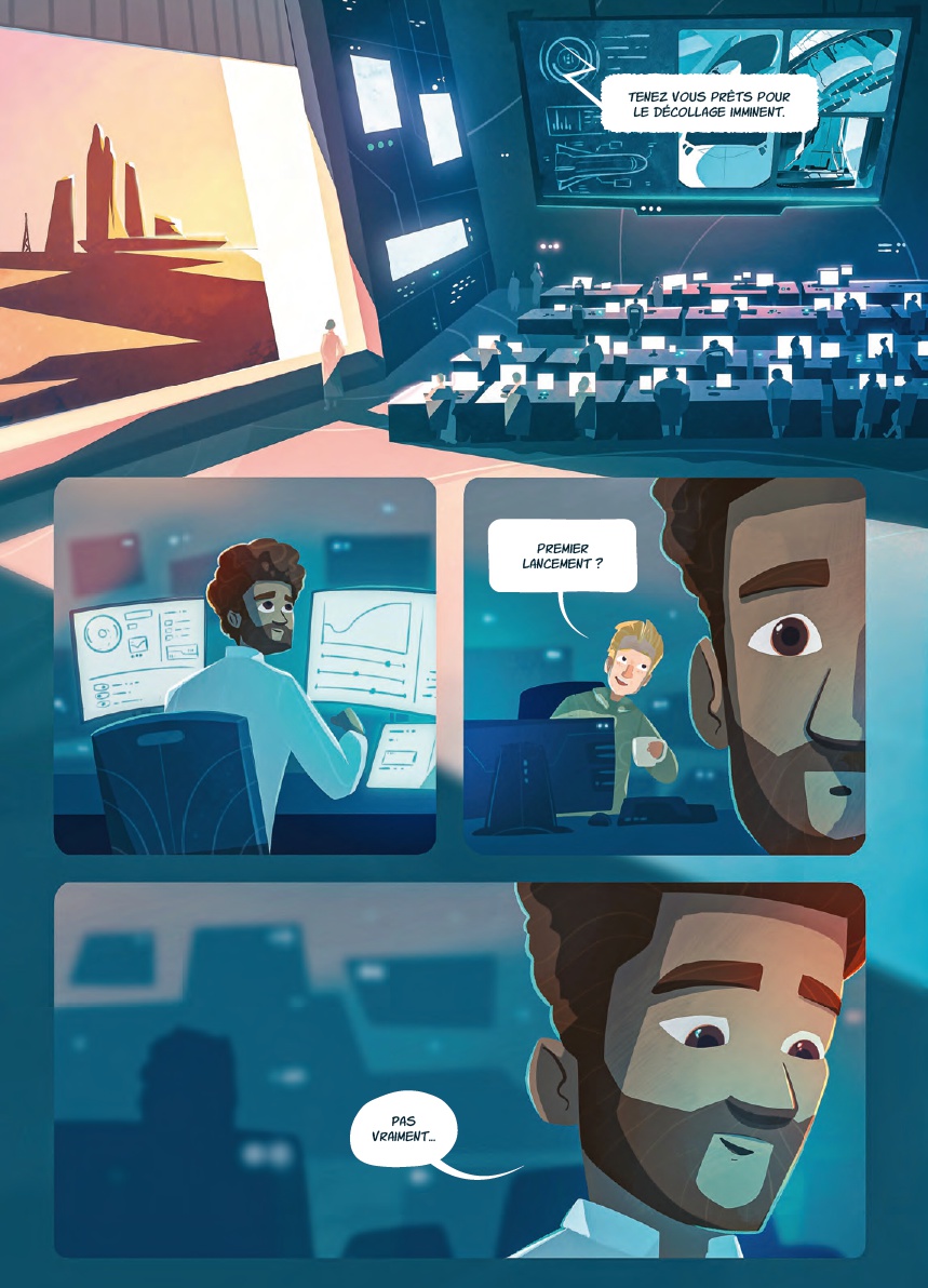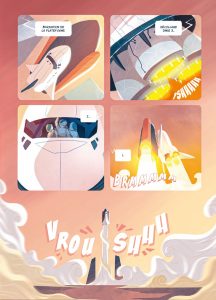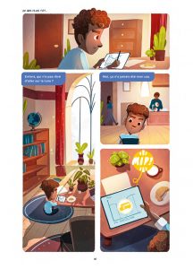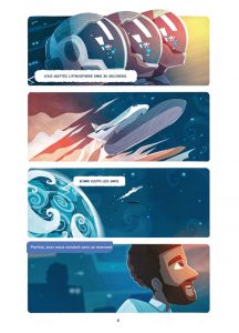 Nina Phillips et Nicolas Barry, tous deux fans de Steven Spielberg, nous entraînent dans une formidable aventure où les enfants sont au cœur du récit. Les trois protagonistes voient leur relation évoluer au fil de l’intrigue. Tout d’abord méfiant envers Alphonse qu’il voit comme un rival vis-à-vis d’Iris, Bastien devient son ami. Ainsi, c’est la force d’une amitié autour d’un projet commun dont les jeunes lecteurs doivent s’inspirer en lisant cet album. La maladie tient également une place importante dans l’histoire et les auteurs montrent qu’il faut continuer d’y croire et soutenir la personne touchée car garder le moral est primordial pour cette dernière. Pour illustrer cette BD, Etienne Péran nous en met plein les yeux et ne lésine pas sur les décors. C’est très coloré et son style graphique sied à la perfection au sujet touchant de cette histoire.