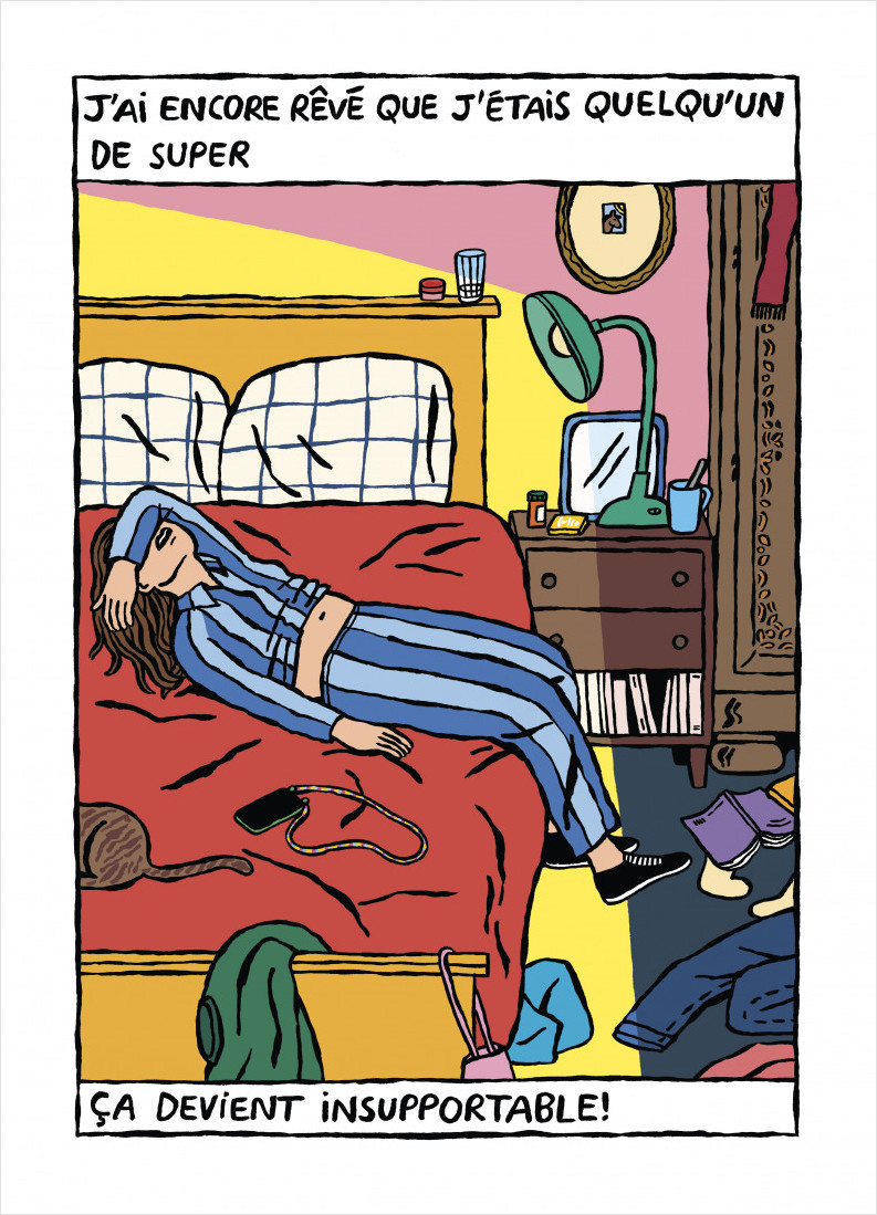 Après l’album La Tempête (déjà publié aux éditions L’Agrume) dans lequel l’autrice nous faisait suivre la vie d’une famille – la sienne – dont la mère est atteinte d’un cancer, Violette Vaïsse nous offre cette fois-ci un recueil de saynètes autour de la psychanalyse ou, tout du moins, de l’appréhension et de l’expression des émotions. À chaque page sa situation dans laquelle tout le monde peut piocher et retrouver une partie de soi : égoïsme, tendance au défaitisme, sentiment de supériorité, goutte d’eau qui fait déborder le vase… Les couleurs sont aussi éclatantes que l’ensemble est drôle. Une pensée spéciale pour les travailleurs qui doivent être trop souvent pris pour des psychologues ou psychiatres au tarif imbattable, tels la coiffeuse et le boucher de l’album.