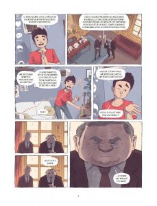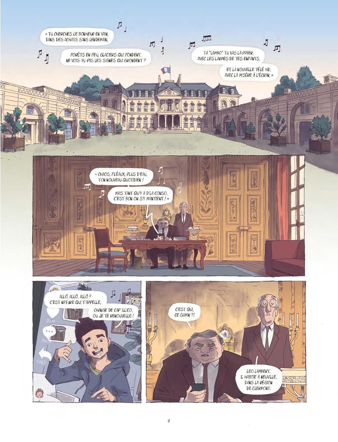 Et soudain le futur est un bon exemple quant au fait que prendre de solides arguments et aborder un sujet fort et essentiel pour mieux aborder l’avenir n’est pas la garantie d’un récit inattaquable. Mathieu Burniat et Dominique Mermoux imaginent pourtant, avec beaucoup de travail dans le scénario et la représentation graphique, une histoire d’anticipation proche qui n’a rien d’absurde ou de fantaisiste, mais la manière de la présenter n’est pas exemple de certaines maladresses, parfois trop grosses pour adhérer à un discours pourtant juste. Avec ses personnages bien trop manichéens – la gentille voleuse ou le chef-gourou sympa s’opposent à un clone de Valérie Pécresse hargneux et buté, fan d’Emmanuel Micron (Groland, je mourrirai pour toi ?) – la nuance est la grande absente de cet album, ce qui est bien regrettable dans un débat aussi casse-gueule. Le manque de touches d’humour empêche également de faire passer plus facilement les chiffres, explications, statistiques et faits scientifiques fournis par les quatre chercheurs ayant collaboré à ce projet. On ressort donc de cette lecture sans trop savoir quoi en penser, la décroissance tant vantée ayant de plus partiellement échoué dans l’expérience racontée.