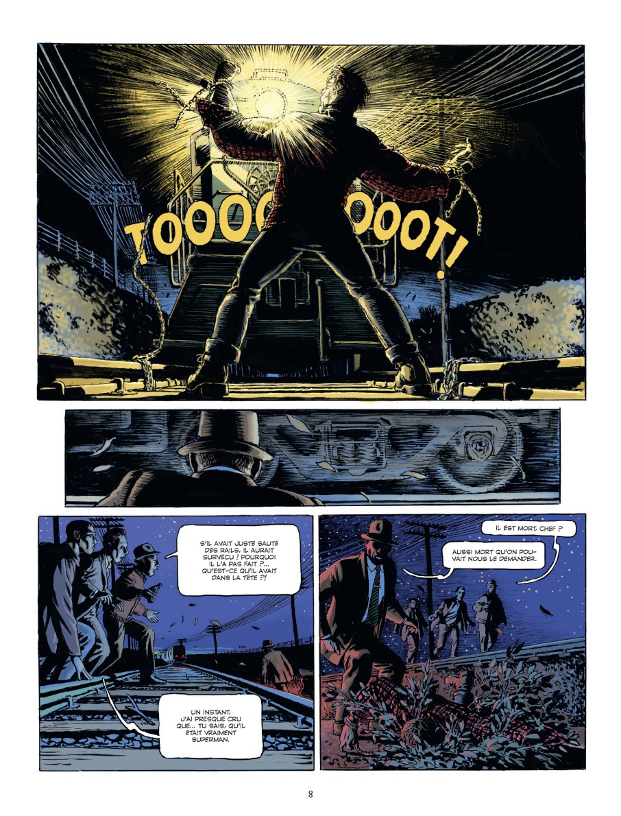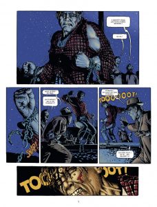 Cet album étonnera sans doute beaucoup ceux qui découvrent l’univers des deux auteurs croates Igor Kordey et Darko Macan, qui retravaillent ensemble pour Frankenwood. Ils rendent hommage aux acteurs et actrices mythiques du cinéma américain de manière parodique mais se détachent beaucoup du style graphique qu’on pourrait attendre de ce genre, du moins des codes franco-belges. Le titre met sur la voie, de même que l’indication comédie noire. Ici, pas de caricatures légères saupoudrées d’humour absurde ou scato, mais un dessin tourné vers le comics d’horreur, et des dialogues en décalage. Le scénario est lui aussi complètement barré mais fonctionne plutôt bien. Il faut dire que l’idée de départ est savoureuse et donne à réfléchir sur le statut des légendes du cinéma et leur enfermement dans des rôles devenus mythiques. Évidemment, plus vous serez cinéphile, plus vous apprécierez les clins d’œil, mais une culture modeste, comme la nôtre, peut suffire pour apprécier l’ensemble. Reste à saluer toute l’équipe de tournage – Anubis aux finitions et couleurs (saturées) ainsi que Fred Urek pour la partie lettrage et sous-titres sont également crédités au générique – en lice pour l’Oscar du meilleur ovni.