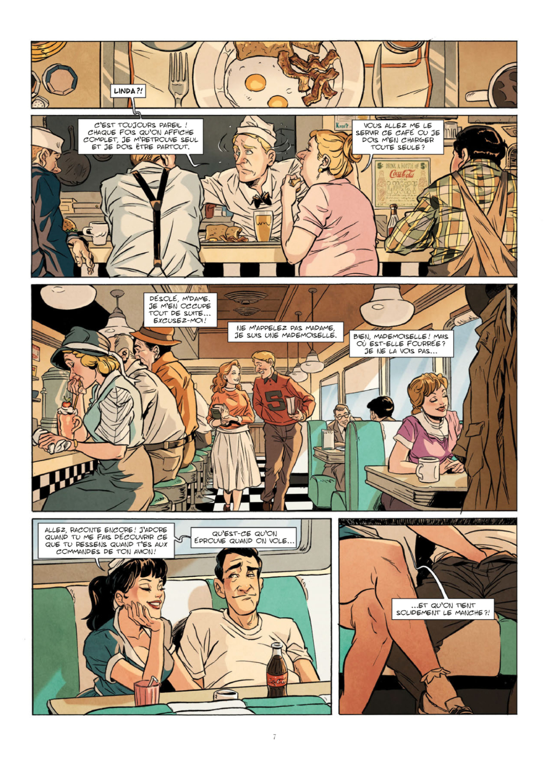 Après avoir imaginéet mis en scène Les Arcanes de la Maison Fleury, un solide polar dans l’Angleterre victorienne, Gabriele Di Caro s’attaque cette fois à l’Amérique des années 50, jouant avec les codes de l’époque, à la fois enjouée et puritaine, dans un après-guerre plein d’optimisme et d’inventivité. Les scènes très coquines sont évidemment de la partie, avec cette sensualité ravageuse qui émane des personnages féminins dessinés par l’artiste italien. Une fois encore, l’ambiance est chaude et sexy, mais l’intrigue n’est pas laissée de côté et on assiste à une véritable étude de mœurs, autour de protagonistes tantôt veules et lâches, tantôt naïfs et ouverts d’esprit. Plusieurs sujets intéressants sont même brassés, la petite bourgade de Sweetville étant un cadre parfait pour rassembler ces personnalités variées qui se débattent avec leur passé, leurs regrets ou leurs espoirs, et l’arrivée d’un élément surnaturel fait tourner l’ensemble à la fable. Visuellement, c’est toujours aussi précis et soigné, Gabriele Di Caro usant d’un trait expressif et de couleurs chaleureuses qui dépassent le cadre habituel des productions pour adultes.