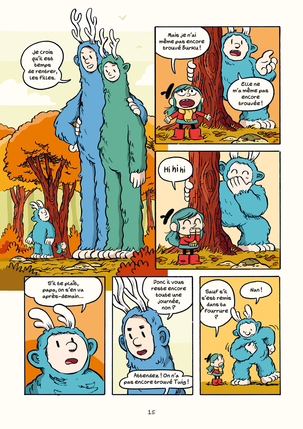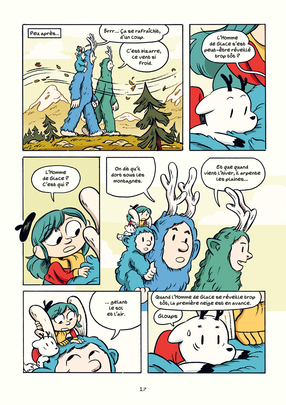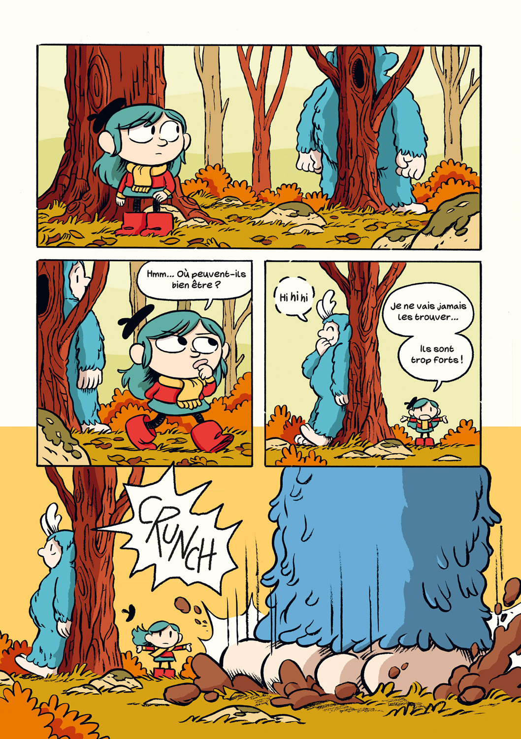 Ce second tome des aventures d’Hilda et Twig est une nouvelle fois une grande réussite. Revenant aux fondamentaux de la série-mère en ce qui concerne les personnages (ici les trolls), Luke Pearson sert un récit encore plus empreint de fantastique avec la présence de l’Homme de glace, qui ne manquera pas de conquérir le coeur de tous les fans de la petite fille aux cheveux bleus et de son fidèle renard-cerf. Les valeurs défendues à travers l’univers d’Hilda, comme l’amitié, l’humanisme, l’entraide et le respect, sont bien entendu bien présentes dans ce nouvel opus très dynamique et extrêmement bien écrit. Les lecteurs en herbe retrouvent la construction narrative en trois bandes, mise en place depuis le début, qui est idéale pour les premières lectures. L’auteur britannique utilise également les illustrations sur deux planches qui donnent un maximum d’informations, en même temps qu’elles régalent les papilles oculaires des petits et des grands (cf le diaporama).