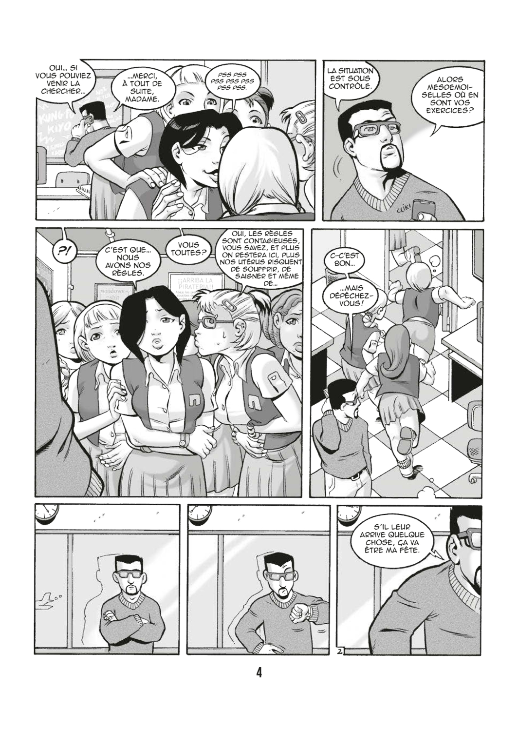 Après les deux tomes d’Université X, Manolo Carot est enfin de retour avec un album inédit dans la même collection. Ce nouveau petit format souple, totalement délirant et bien sympathique tant l’auteur espagnol mêle adroitement sexe et humour, recueille plusieurs histoires courtes parfois liées entre elles jusqu’à une conclusion loufoque qui souligne bien les intentions d’en faire une joyeuse récréation coquine. Dans un noir et blanc parfaitement encré, seulement enrichi de trames de gris, Man montre une fois encore la richesse de son trait, jamais avare de détails et très expressif. Le fait de proposer un récit pour adultes ne l’empêche pas de soigner son style, qu’il assume avec un plaisir communicatif.