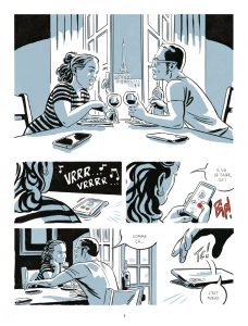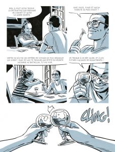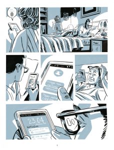 Parmi les très nombreux ouvrages sur le sujet – à croire que chaque éditeur tente d’avoir celui de référence au risque de laisser les lecteurs sceptiques sur leur orientation éditoriale tant les BD d’enquête prennent actuellement le pas sur la fiction au point de toutes se ressembler – Hypersurveillance a les mêmes défauts et qualités que les autres. C’est certes bien réalisé, avec des témoignages édifiants et des sources fiables et documentées sous le contrôle d’Amnesty International, et un dessin adroit qui réussit à rendre fluide un album qui enchaîne froidement des interviews, des graphiques et des portraits, Rémi Torregrossa montrant une fois de plus sa capacité à tirer le meilleur de registres très variés. Mais le sentiment qui prédomine est que la bande dessinée, en tant que média populaire et accessible, est sous-estimée au point de n’être pour certains qu’un point d’accès à quelque chose de plus important (ici, les documentaires et articles servant à nourrir le récit). Julie Scheibling orchestre davantage une succession de témoignages qu’un réel scénario, prétexte pour tout lier. Cet entre-deux laisse donc un peu de marbre malgré la pertinence du sujet.