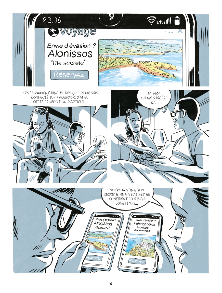 Alors qu’elle réfléchit avec son compagnon à une destination de vacances tranquille et reposante, Gaëlle s’étonne de retrouver le soir même des propositions de séjours correspondant à leurs désirs sur leurs deux smartphones. Inquiète d’être ainsi espionnée et peut-être écoutée, la jeune journaliste obtient de son chef l’autorisation de mener une enquête sur la surveillance moderne. La voici ainsi lancée sur les aspects méconnus et secrets des objets connectés du quotidien, l’utilisation des données personnelles et les outils utilisés dans le monde entier pour orienter les choix économiques, politiques et culturels…