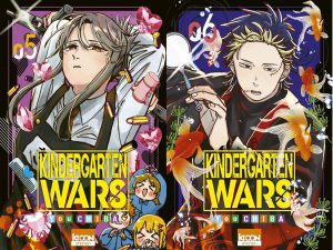Ces deux nouveaux tomes de Kindergarten Wars continuent dans la lignée des précédents avec un savant mélange d’humour et d’action où tous les coups sont permis. On y découvre deux nouveaux personnages vraiment intéressants et on a bien du mal à savoir si ceux-ci parviendront enfin à venir à bout de nos héros ou s’ils se feront terrassés aussi facilement que les précédents qui ont tenté de s’attaquer à l’école. Il est vraiment sympa aussi de découvrir un tout nouveau terrain de jeu et donc de quitter l’école pour se retrouver dans un quartier marchand de Tokyo, permettant à You Chiba de dessiner de nouveaux décors. Les relations entre les différents personnages sont aussi au cœur de ces deux tomes, permettant d’ajouter encore plus de moments cocasses mais aussi d’apporter de nouvelles questions concernant Léo, le frère de Rita, qui semble de plus en plus vouloir se débarrasser de sa sœur sans que l’on comprenne encore bien pourquoi. Alors que l’on aurait pu penser que l’histoire commencerait à tourner en rond, tant elle est simple au départ, You Chiba étonne avec un scénario plein de rebondissements qui donne envie de continuer à lire cette série très réussie.