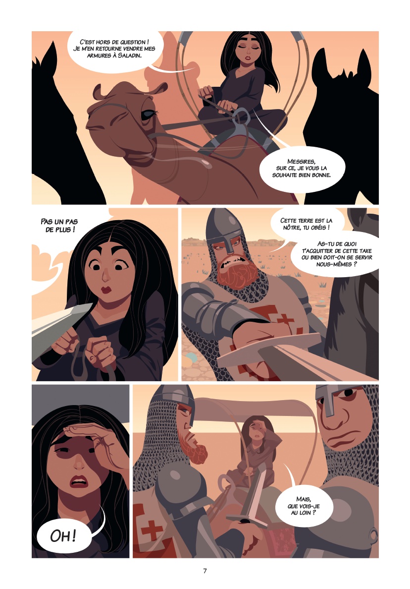 Été 1181, royaume de Jérusalem. En plein désert, la forgeronne Séraphine est arrêtée par quatre Franjs qui détiennent un prisonnier turc. Elle aide alors cet homme nommé Yusef à liquider ses geôliers grâce à son armure. Tous deux se rendent à Jérusalem car Séraphine a une mission : trouver des guerriers qui sauront protéger son village, Beitunia, des Croisés prêts à piller, tuer et violer comme ils l’ont fait 22 ans auparavant. Se joindront à ce duo le mercenaire écossais Lennox, la nonne nubienne Elzébeth, l’hashashin Tayib, le troubadour français Galcerand de Sanzay, la bûcheronne viking Sigrid et le guerrier tatar Sambotaï. Mais, le temps d’arriver à Beitunia, il va falloir faire cohabiter tout ce beau monde et ce n’est pas gagné.