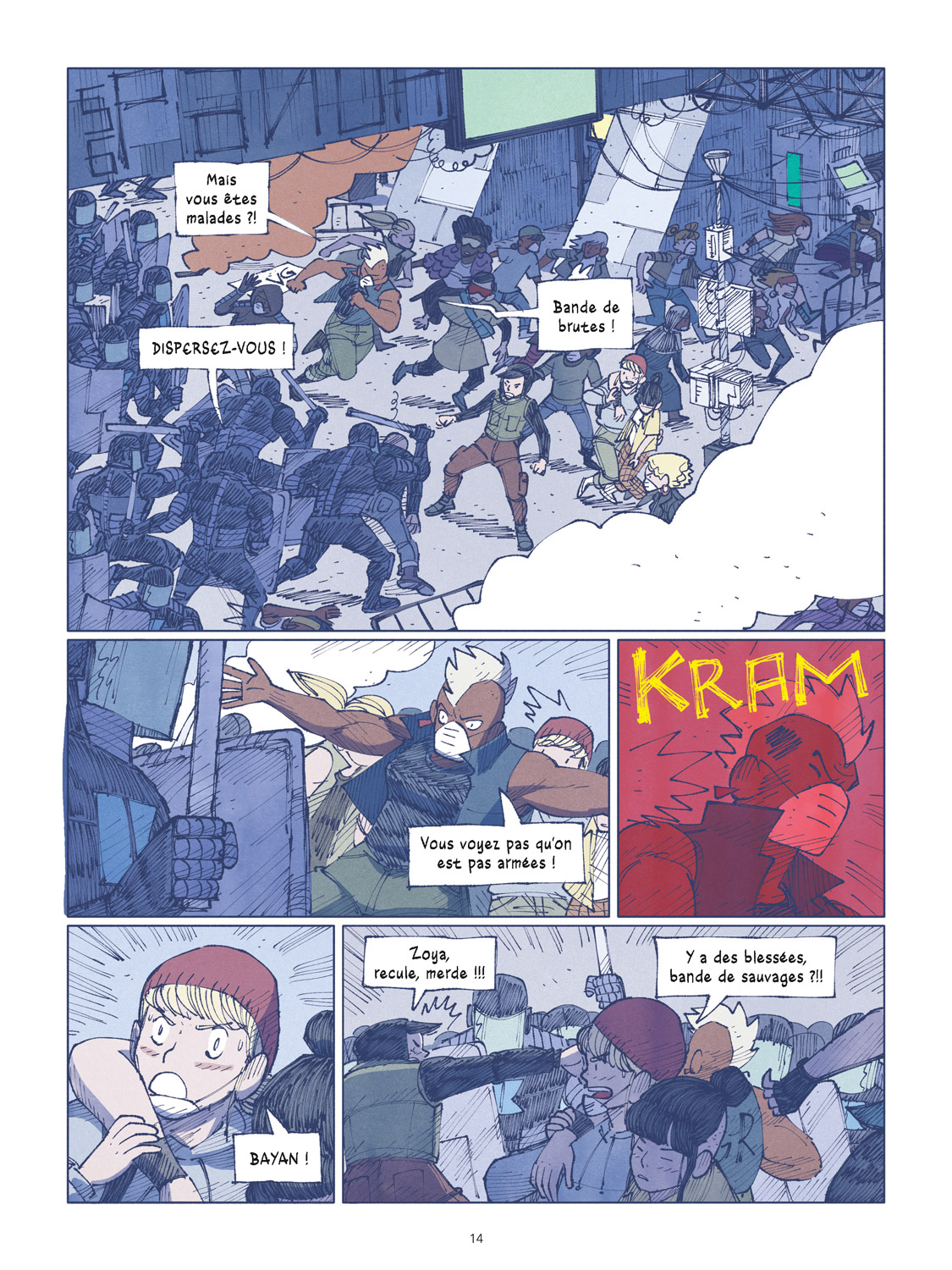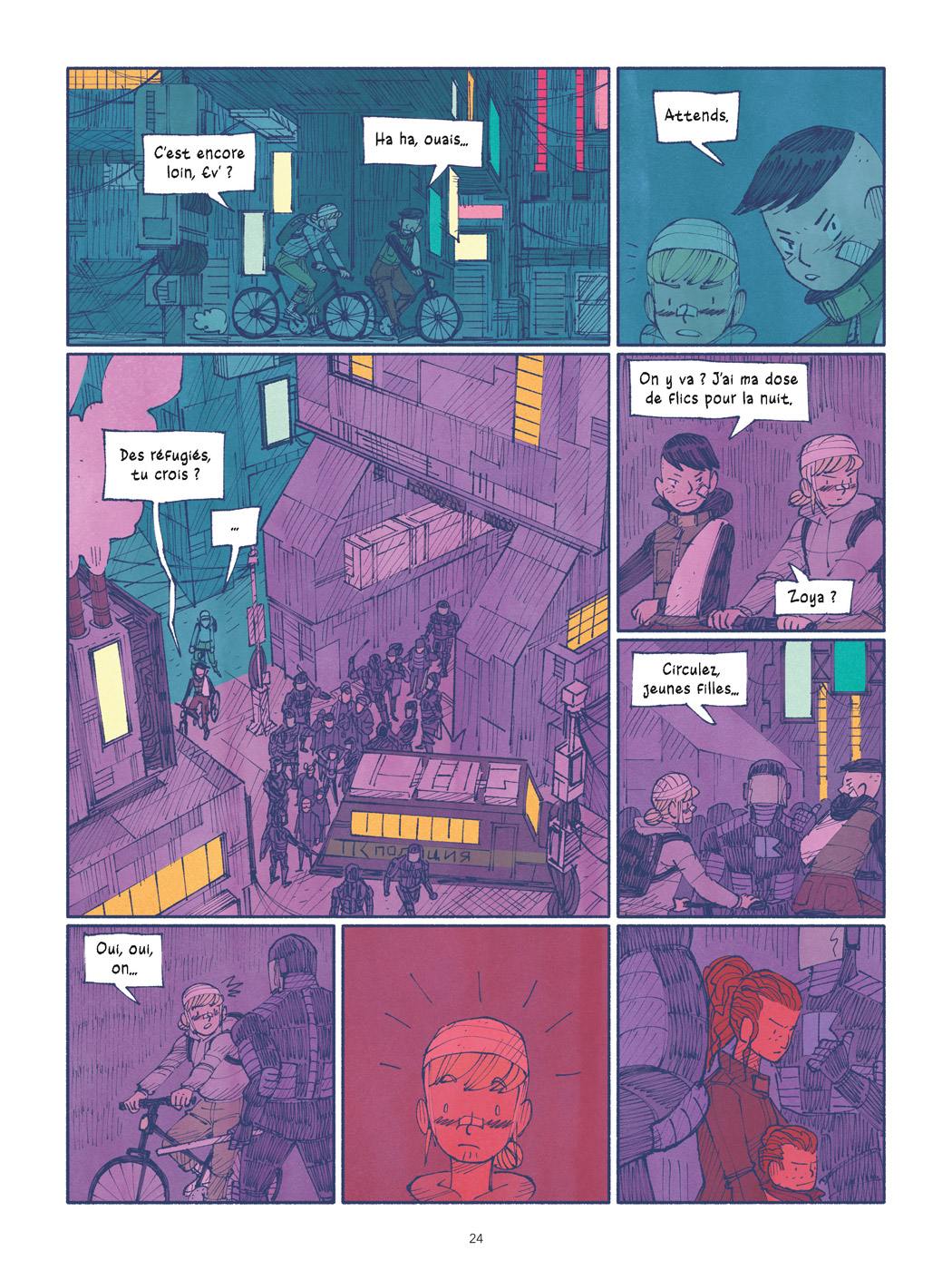 Zoya est au cœur d’une manifestation pour défendre un collectif féminin dénonçant les mesures de Kosmo et de l’Administratiya pour le réarmement démographique. Accompagnée de Bayan, Ada et d’autres personnes du squat, elle est là pour Ev’ et sa grand-mère qui tardent à arriver à cause d’une présence très dense des forces de police. Seule Nyura, un peu trop accro aux accélérateurs, manque à l’appel. Malheureusement, tout part vite en sucette à cause des membres extrémistes du KUD venus sur place et dont fait partie Antton, qui l’a reconnue et va la jeter dans les griffes d’un flic corrompu qui ne recule devant rien pour assurer son futur. De son côté, Manavi est de plus en plus impliquée dans le réseau de codeurs clandestins Bubna afin de s’opposer à la propagande de Kosmo. De plus, elle aimerait “s’évader” de temps en temps de l’enclave qu’elle considère comme une prison et essaye de négocier avec son frère un moyen d’en sortir. Sans le savoir, ces activités clandestines la relient avec Zoya mais mettent en péril la suite de sa scolarité et le statut privilégié de sa famille.