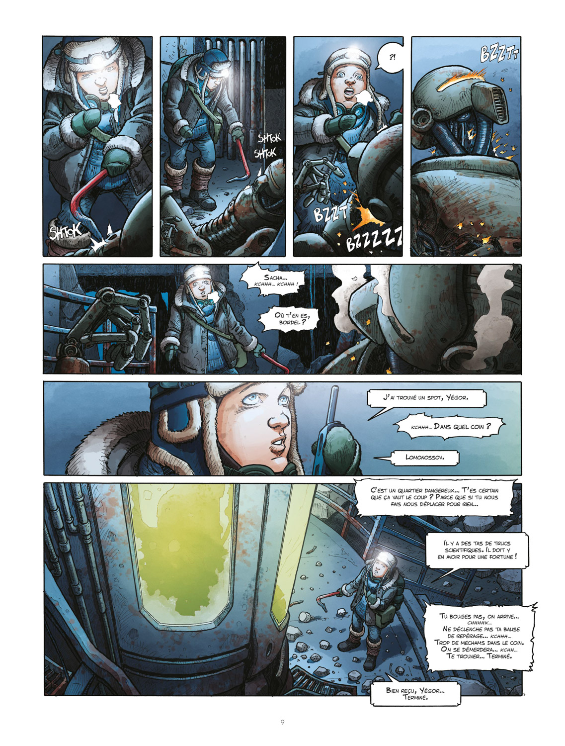 Voilà une suite qui tient largement toutes ses promesses ! Que ce soit d’un point de vue de l’action ou de l’avancée de l’intrigue, le scénario de Nicolas Jarry (Food Truck War) satisfait l’un et l’autre à travers un récit dense où le sens de la narration est très appliqué. Toutes les pièces du puzzle semées dans l’opus précédent révèlent ici leur utilité. De plus, l’auteur continue de dévoiler le passé de Daïa, plus particulièrement l’épisode de la disparition de sa sœur. Nul doute que ce sujet fera l’objet d’un développement ultérieur en parallèle de celui des conséquences de la découverte du « patient zéro » du Grand Déverrouillage. Les révélations de Mechanical Mind poussent au questionnement, au même titre que le premier tome sur les évolutions technologiques qui pourraient permettre de lier l’homme et la machine demain. Cette série d’anticipation peut compter sur la maîtrise graphique de Thomas Legrain (Latah) pour dégager toute l’énergie et le spectaculaire nécessaires. Les décors et les cadrages sont une nouvelle fois absolument incroyables et finissent de nous projeter dans ce futur pas si lointain qui fait froid dans le dos, bien aidé en cela par la mise en couleurs au diapason de l’incontournable MiKl.
