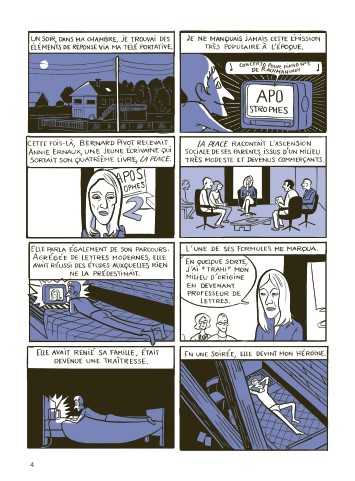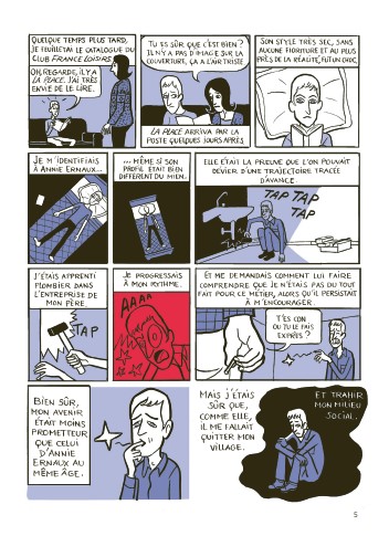 En 1983, Hugues a 18 ans et veut une autre vie que celle de ses parents. Apprenti plombier dans l’entreprise de son père, après avoir quitté l’école, il a un caractère rêveur et persévère dans le dessin, à la grande incompréhension de ses géniteurs. Un soir, il entend Annie Ernaux parler de trahison de son milieu d’origine et l’écrivaine devient aussitôt son héroïne. En 1979, quatre ans auparavant, le jeune adolescent a déjà compris que son avenir était loin de son village. Que ce soit chez lui, à l’école, dans la ferme de ses grands-parents, il est sensible à tout ce qui peut l’attirer loin de la routine, allant jusqu’à développer une curiosité pour la mystérieuse nouvelle voisine dont tout le monde se méfie…