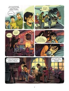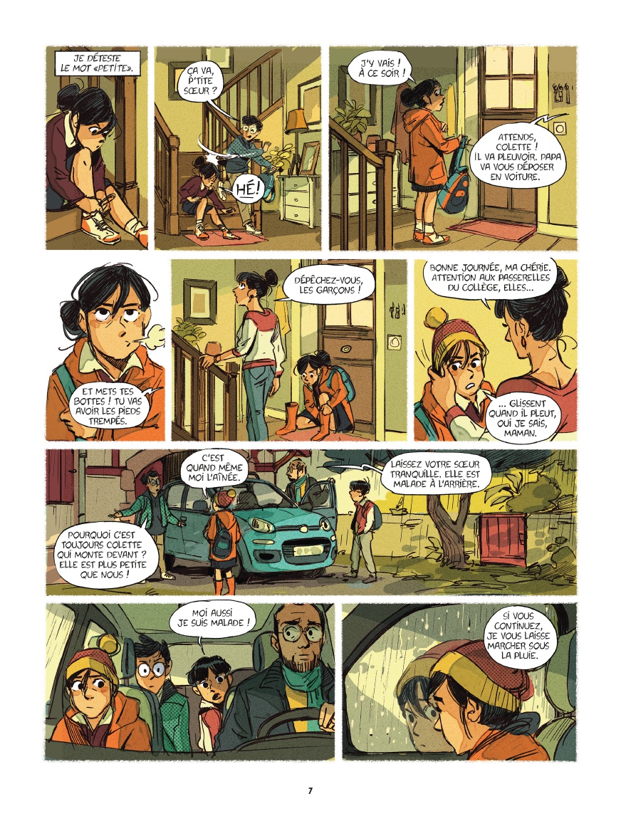 C’est une histoire sympathique comme les réseaux sociaux en font naître parfois. En avril 2022, Véro Cazot tombe sur un dessin publié par Carole Maurel sur Instagram. Cette jeune fille avec des gants de boxe lui tape dans l’œil, et l’envie de raconter son histoire se fait pressante. L’idée d’une collaboration entre elles se concrétise rapidement. Trois ans plus tard, ce Premier round lance la série, et le dessin d’origine est repris en couverture. Colette, alias Mi-Mouche, s’impose tout de suite comme un personnage attachant. Son parcours difficile est traité avec le bon dosage et le personnage de l’ombre est particulièrement bien trouvé. Sa forte personnalité a tout pour plaire aux jeunes qui pourront s’identifier à elle, et plus globalement à tous les publics ; ceux qui sont habitués au trait raffiné de Carole Maurel pour des albums plus adultes ne seront pas perdus et seront même pris par le match. Encrage généreux, attitudes et mouvements réussis, couleurs lumineuses et charmantes, toutes les conditions sont réunies pour passer un bon moment. Nous sommes ravis de la retrouver chez Dupuis. Quand le scénario suit le mouvement et révèle une héroïne apte à combattre tous les préjugés, l’alchimie est totale.