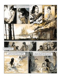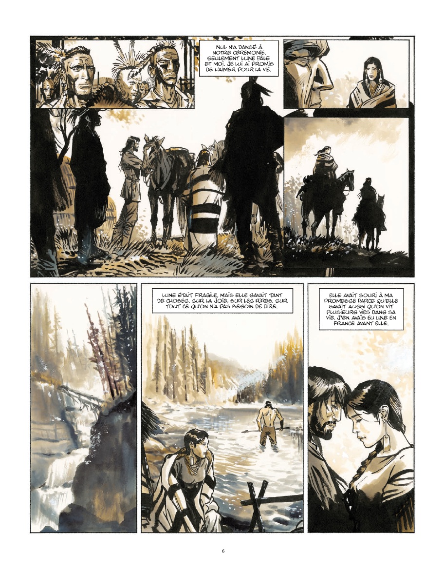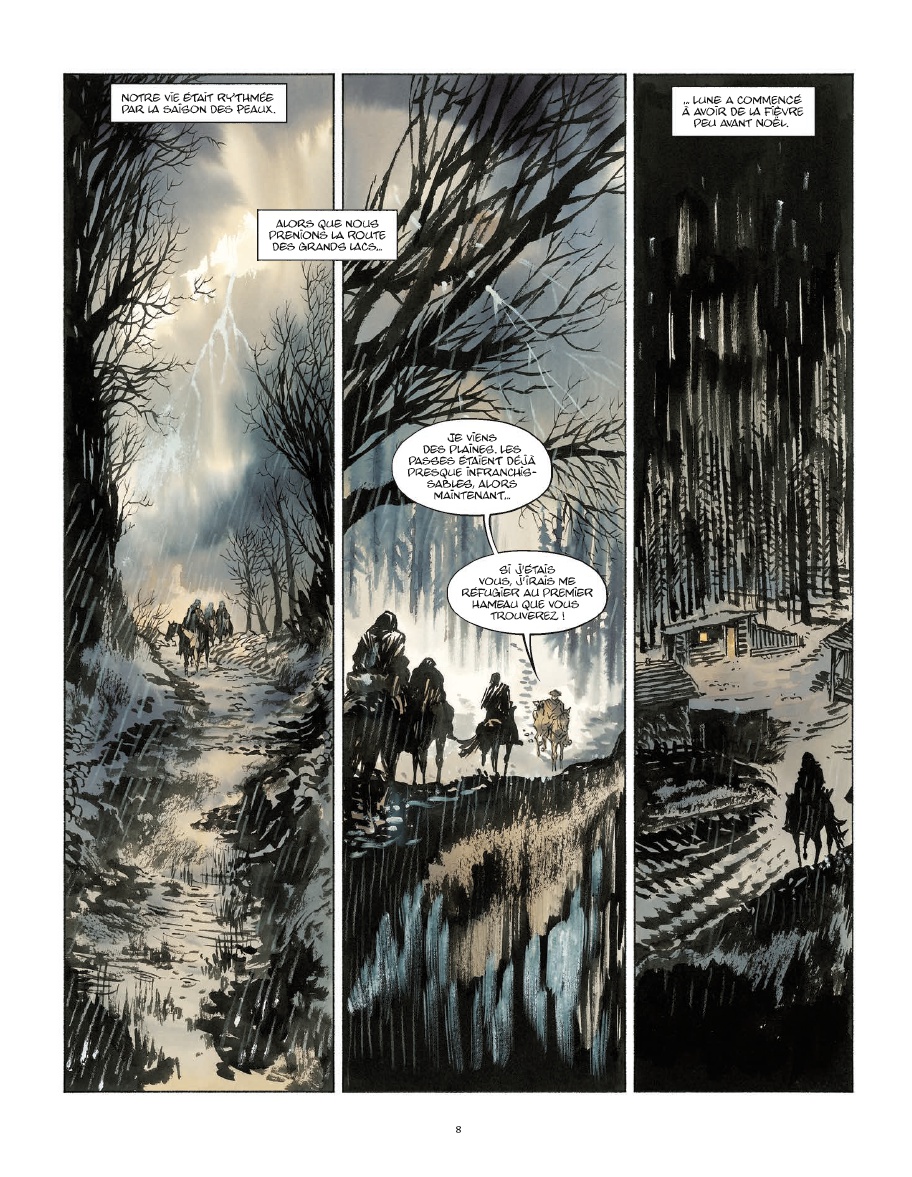 Nouvelle France est la seconde collaboration de Stephen Desberg avec Bernard Vrancken aux éditions Maghen après Les Enfants du ciel. Ce récit, inspiré de l’Histoire de l’Amérique, est une grande aventure qui prend pour point de départ un territoire encore sauvage et passe également par l’Europe à un moment donné. Ce voyage, à travers son personnage principal, montre une originalité peu commune. La réalisation des planches de Bernard Vrancken en couleurs directes l’est tout autant puisque c’est une première pour le célèbre dessinateur belge. Tantôt sombres, tantôt lumineuses, les ambiances de ce récit varient selon sa progression. Les prémices de l’indépendance des Etats-Unis sont également l’un des sujets centraux de l’intrigue et il est intéressant de découvrir cet aspect d’un pays en devenir.