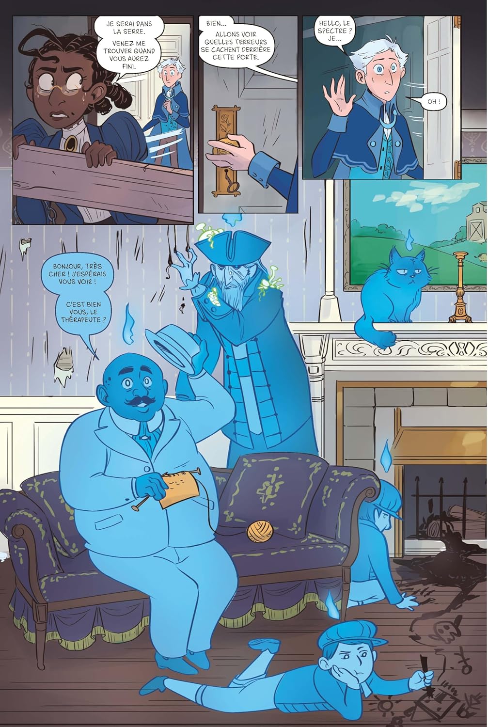 Le deuil est un sujet particulièrement difficile, ce qui explique très certainement qu’il soit si peu abordé en bande dessinée pour enfants ou adolescents. Johanna Taylor s’empare de ce sujet avec Le Passeur d’âmes en y intégrant une dimension fantastique qui permet d’adoucir un peu le sujet, même si celui-ci reste assez horrifique, notamment dans ses visuels. Le personnage de Dorian est vraiment passionnant, il essaie de venir en aide à toutes ces âmes rejetées par les vivants, quitte à se mettre en danger et à mettre en danger la seule relation qui lui importe et lui apporte un semblant de normalité. A ce titre, on éprouve énormément d’empathie pour le personnage de Brody qui accepte dès le départ Dorian pour ce qu’il est et ce qu’il fait et qui souffre tant de voir celui qu’il aime s’oublier pour des fantômes qu’il ne voit pas lui-même. On ressort de cette lecture plutôt chamboulé, ne pouvant s’empêcher de réfléchir aux relations que l’on peut avoir avec nos proches et la façon dont on fait fasse au deuil au cours de notre vie. Les dessins sont très réussis, permettant de s’immerger totalement dans cette histoire fantastique, notamment grâce au mildiou, cet espèce de champignon qui matérialise le mal-être des esprits et le rend bien plus réel.