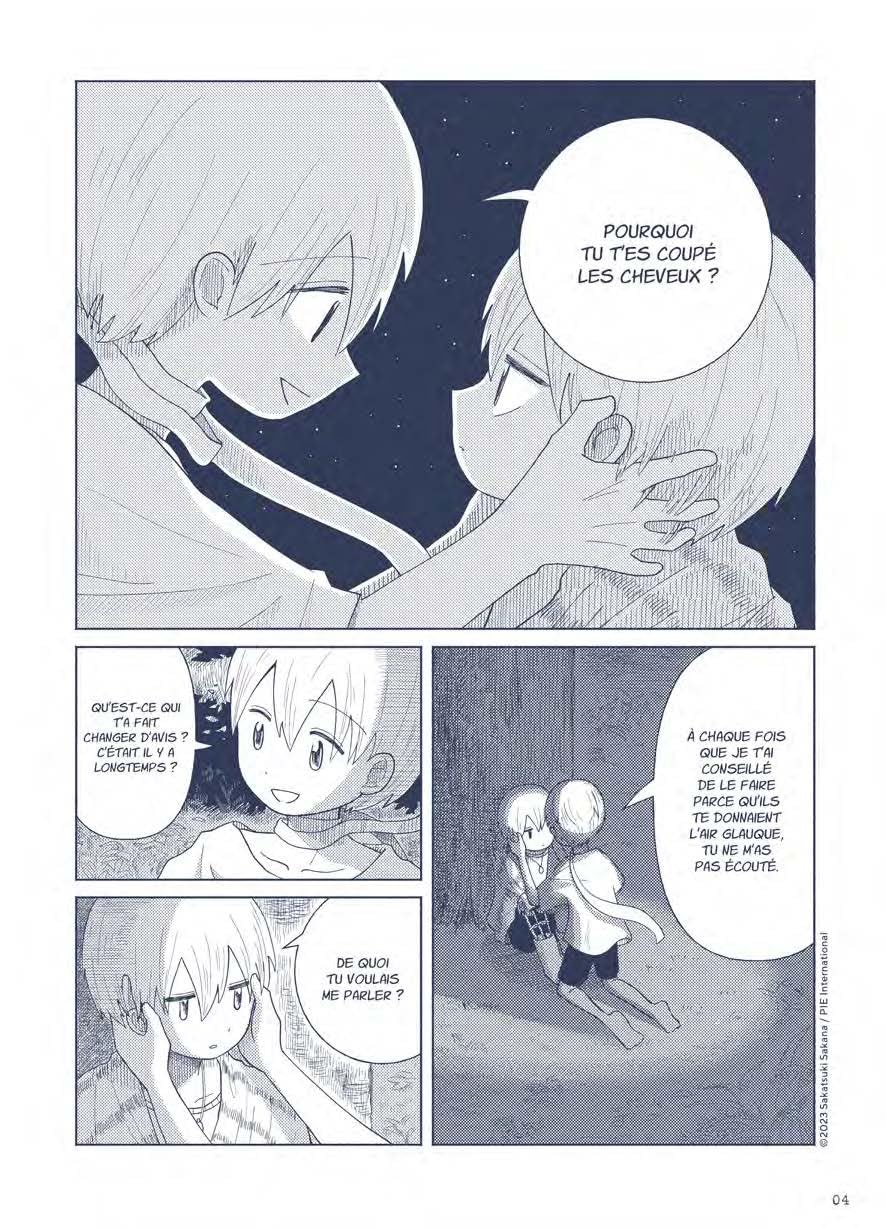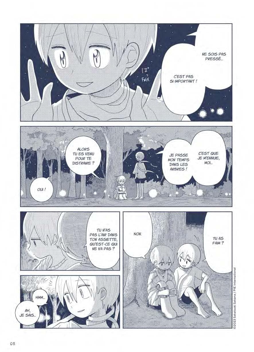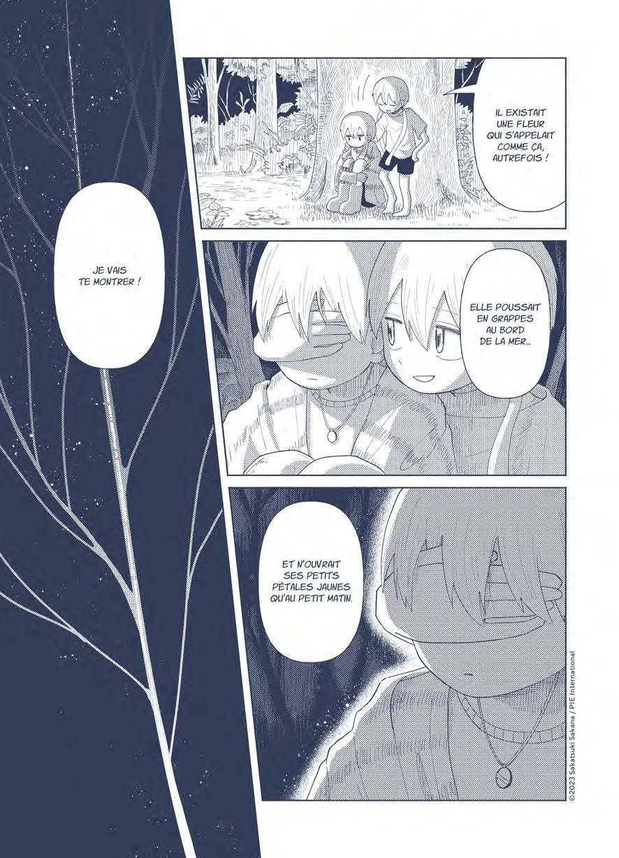 Ce troisième tome de Planetarium Ghost Travel est un peu différent des deux précédents, toujours aussi onirique mais terriblement plus triste ! On ne peut s’empêcher d’éprouver de l’empathie pour 303 dans ce nouvel opus qui raconte toute son histoire. On découvre ce qu’il est réellement et ça fend le cœur. On ne peut s’empêcher de ressentir énormément d’émotions à la lecture, tant Sakana Salatsuki a su parfaitement retranscrire la solitude ressentie par 303 et par Aby, qu’on découvre et qu’on aime déjà autant que 303. En revanche, Tobias se révèle plutôt désagréable, voire dénué d’émotions et même parfois carrément méchant, que ce soit avec Aby ou 303. Grâce à ce nouvel tome, on comprend également mieux le titre du manga, qui était un peu obscur jusque-là, et on a hâte de repartir avec lui à la découverte de l’univers et de ses habitants qui disparaissent petit à petit.