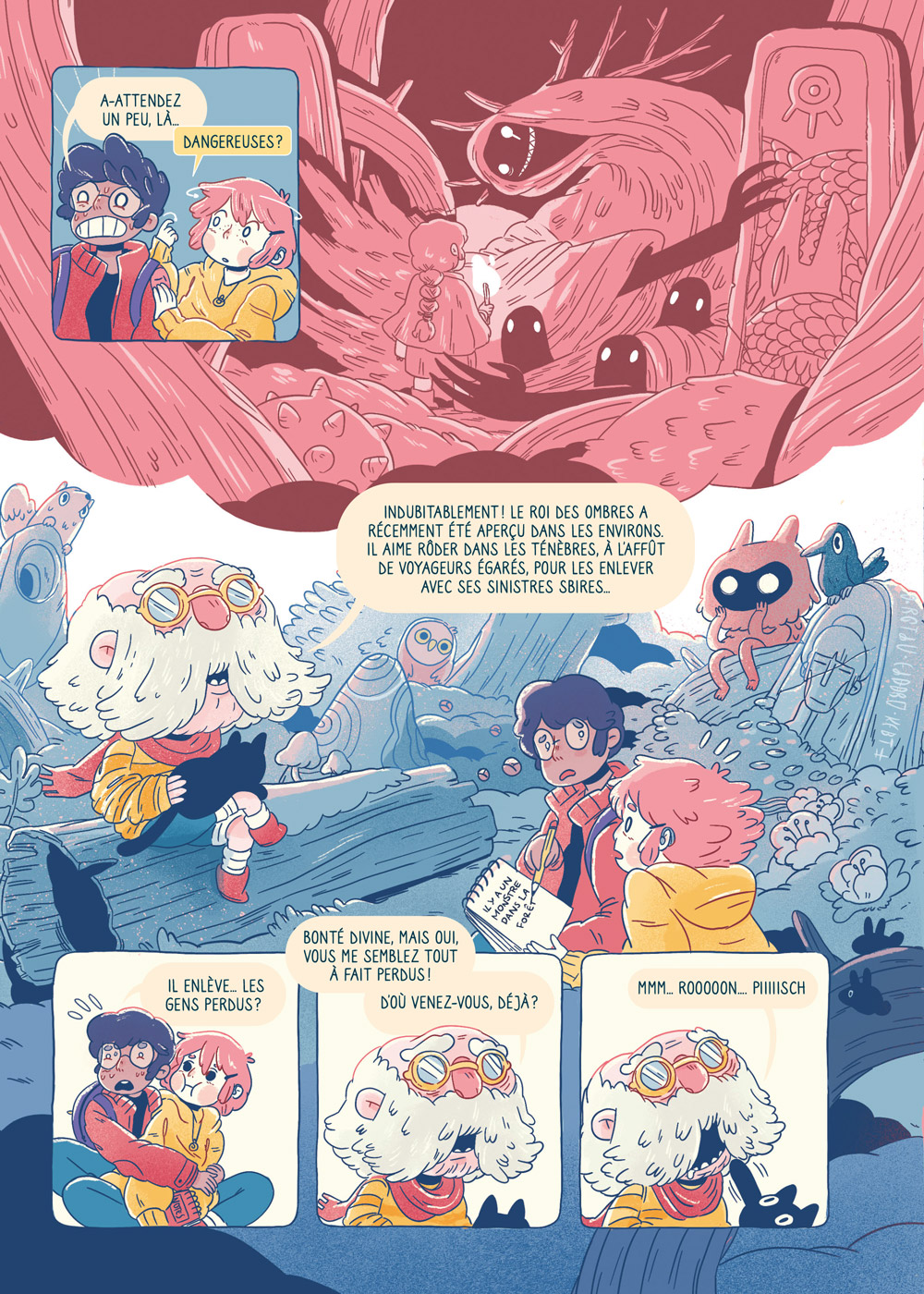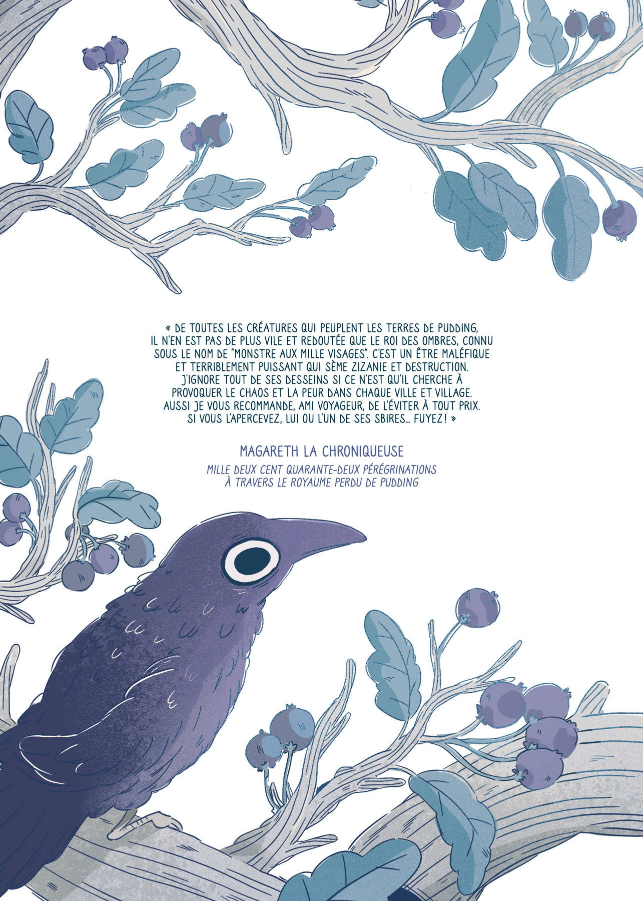 Le Petit Val. Daï est harcelé par trois brutes de l’orphelinat Saint-Clare. Sa meilleure amie Chiri, qui est sourde mais voit très bien, lui vient en aide de manière ingénieuse et douloureuse pour les agresseurs. De fait, les deux orphelins s’empressent de fuir afin d’éviter les représailles de leurs « camarades » et se dirigent vers la forêt hantée. Cette course les mène à un portail donnant sur un étrange tunnel aboutissant à un royaume oublié portant le nom de Pudding. Là-bas, ils rencontrent Yayo, historien et archéologue itinérant. Grâce à lui, les enfants comprennent vite qu’une créature dangereuse sévit dans le secteur, le Roi des Ombres, que les gens appellent aussi le « monstre aux mille visages ». Plein de bienveillance, Yayo accompagne les ados jusqu’à Gaufreville. Dans une taverne où Chiri et Daï espèrent avoir des informations pour rentrer chez eux, ils sont abordés par Sophie, la druidesse, et Oko, le guerrier ogroïde, accompagnés de Boniato, leur bouc-traversin, pour qui ils ont une importance particulière. Ils ne sont pas les seuls à s’intéresser à eux, le « monstre aux mille visages » est sur leurs traces depuis le début !