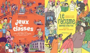 Partant du constat que les enfants ont des pratiques de lecture variées et une curiosité sans limite, les éditions Seuil Jeunesse ont décidé de leur proposer des bandes dessinées en plus des livres inspirants, originaux, drôles et décalés habituels par le biais du nouveau label Seuil Jeunesse BD. La première pierre de cet édifice a été posée avec le retour des personnages loufoques d’Émile Bravo, les 7 ours nains, en août 2024. Pour fournir aux pré-adolescents de 8 à 12 ans des réflexions de qualité, Le Seuil peut compter sur son fonds inestimable et au-delà. Ainsi, le contenu du label sera constitué de BD adaptées d’œuvres du catalogue de l’éditeur mais aussi d’autres médias afin de varier les plaisirs. Pour cette année 2025, ce ne sont pas moins de sept titres qui sont prévus en librairie : Jeux de classes, Le Racisme expliqué à ma fille, Boucle d’or et les 7 ours nains, La Faim des 7 ours nains (sortis le 7 mars dernier), Les Aventures pas sages de la Baba Yaga (août 2025), 738 jours et Skeletos – L’Affaire du sceptre volé (septembre 2025). Des « non-fictions drôlement sérieuses » pour accompagner les plus jeunes dans leur découverte du monde et des « fictions sérieusement drôles » pour satisfaire le besoin en histoires afin de développer leur imaginaire ! Nous vous proposons de découvrir deux d’entre eux dans cet article : Jeux de classes et Le Racisme expliqué à ma fille.