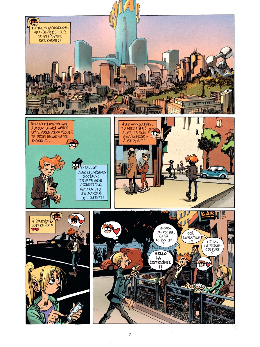 Un an s’est écoulé depuis la World Olympic War. La Centaure, gagnante de la compétition, a utilisé ses gains pour construire dans le Nova Brussels un building appelé Gaïa, censé résoudre le problème du réchauffement climatique. Spirou découvre alors chez lui une invitation au nom de SuperGroom alors que seul le comte de Champignac est censé connaître son identité secrète. Il décide de s’y rendre et finit à Gaïa où un immense froid s’installe avec des gens congelés. Et pour cause : condamnée à la suite d’une lésion de la moelle épinière, la Centaure a convoqué ses proches et son plus grand détracteur, à savoir SuperGroom, afin de tous les cryogéniser, elle y compris, jusqu’à ce que l’humanité découvre ce qui peut la sauver.