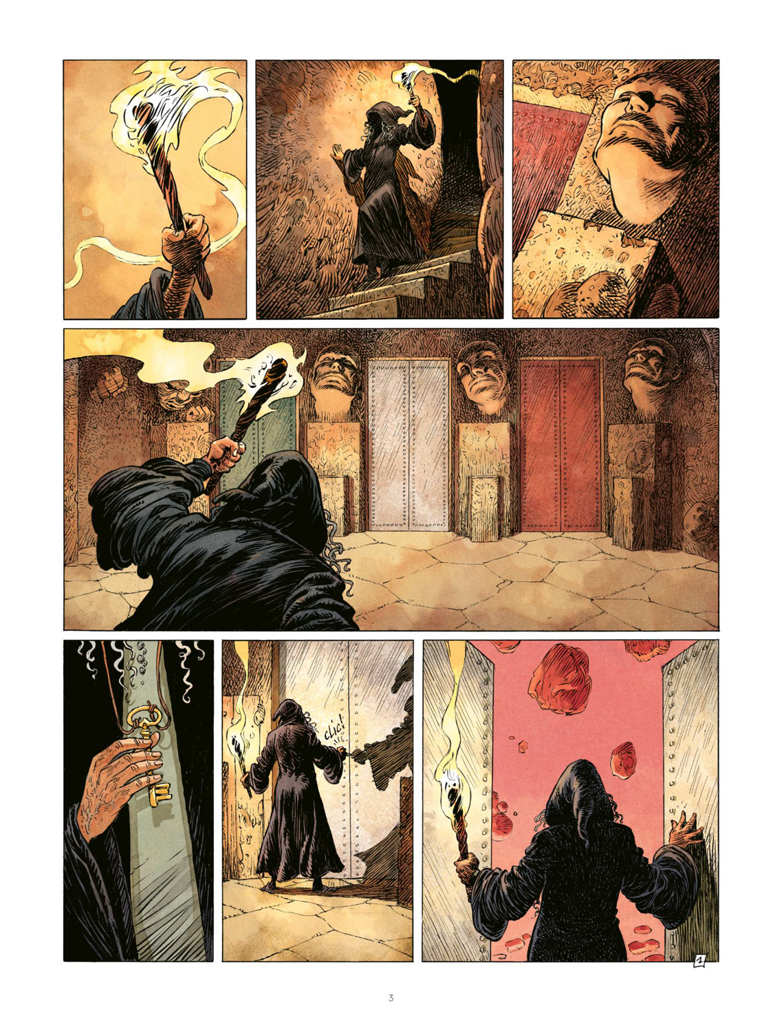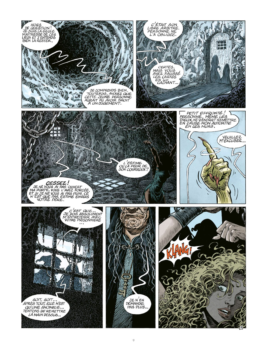 Pour ce nouveau one-shot de Thorgal Saga, Antoine Ozanam (Klaw) est allé chercher ses ingrédients dans plusieurs opus de la série-mère. Le scénariste a d’abord puisé dans Au-delà des ombres (l’album par lequel il est entré dans l’univers thorgalien) pour en extraire Shaniah et la Gardienne des Clés mais aussi dans L’Enfant des Étoiles où apparaissent les larmes de Tjahzi ou encore – et sans être exhaustif – dans Aaricia, où Vigrid rencontre la fille de Gandalf le Fou. Il en ressort une histoire complexe et plaisante qui est tout à fait en phase avec l’esprit originel instauré par les créateurs de Thorgal. Chacun appréciera à sa juste valeur la mécanique du stratagème de Vigrid qu’Antoine Ozanam a mis en place et dévoile au fil des planches, tout comme il a utilisé Jolan et apporté de nouveaux personnages à la caractérisation pleine d’aspérités (l’Empereur et Wojciech) dans les mondes du viking. Mohamed Aouamri, rompu à l’exercice d’appropriation de personnage (La Quête de l’Oiseau du Temps), réalise une prestation de haut vol dont seul lui a la recette. Le dessinateur restitue un Thorgal différent mais dans les standards de l’original, et c’est ce qu’il a fait pour tous les autres personnages. Le résultat est flambant et sert le scénario à la perfection. L’ensemble est exacerbé avec goût par la mise en couleurs de Bruno Tatti qui réalise ici sa deuxième prestation sur la série après De givre et de feu.