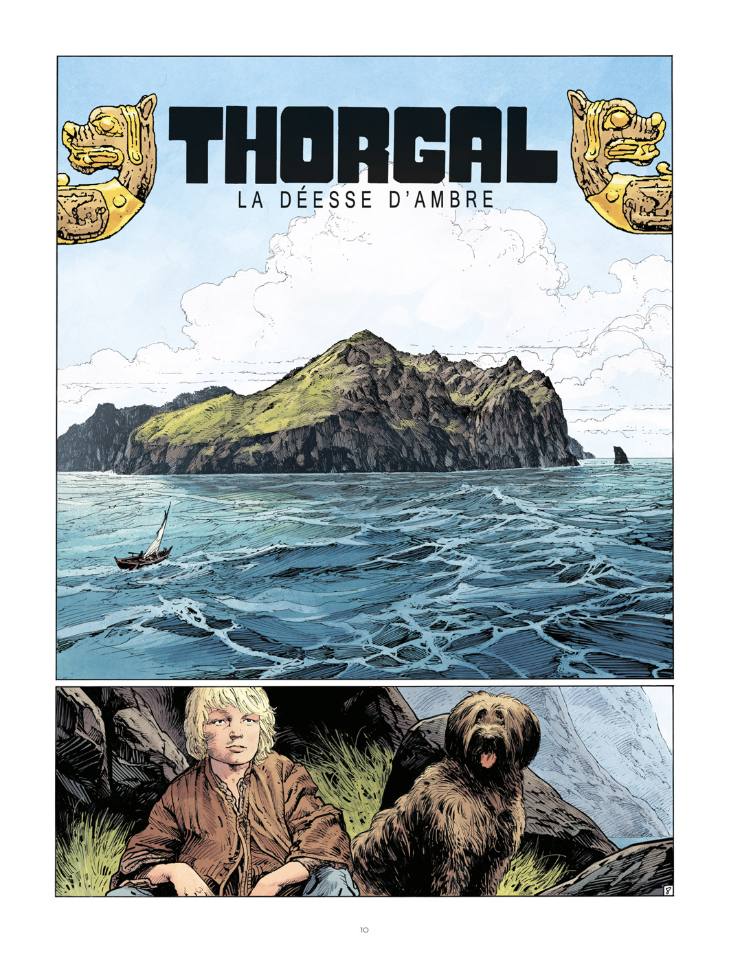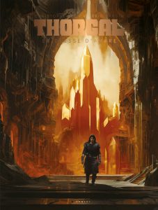 C’est au tour de Valérie Mangin (Alix Senator) et de Christophe Bec (Greenlander) de proposer leur histoire de Thorgal qui se situe là où les deux auteurs ont découvert le héros dans leur adolescence avec Au-delà des ombres. La famille du viking n’est alors composée que de trois membres : Aaricia, Jolan et lui-même, sans compter Muff. Dans une aventure digne des créateurs de la série, Jean Van Hamme et Grzegorz Rosinski, qui leur rend un vibrant hommage, le récit aborde l’amour d’un père pour son fils à travers le sens du sacrifice de Thorgal prêt à donner sa vie pour sauver Jolan. Mais il y est aussi question des punitions que peut infliger Mère Nature lorsque que l’on ne fait pas attention à elle en surexploitant ses ressources par exemple, comme c’est le cas ici avec la personnification de la montagne d’ambre, le déesse Huldra, qui a souffert du pillage de sa résine par les hommes et s’est vengée. Bien sûr, la sororité est au centre de débats avec des femmes fortes qui défendent leurs biens, à l’instar d’Ingrid, en l’absence des hommes. Le scénario pensé par les deux brillants esprits de Valérie Mangin et Christophe Bec est parfait et entraîne les lecteurs aux côtés de l’enfant des étoiles dans une odyssée intense où les décors sont époustouflants de beauté. Le dessin de Christophe Bec, rehaussé avec talent et goût par Gaétan Georges, vient magnifier les écrits. Cela commence avec la superbe couverture dévoilant le palais d’Huldra pour la version classique (pour l’édition spéciale, c’est un portrait d’Huldra), se poursuit avec de nombreuses illustrations pleine page et quatre sur deux pages absolument incroyables. De véritables tableaux représentent le paysage en flammes autour du village d’Ingrid, l’entrée de la mine d’ambre, Huldra sous sa forme démoniaque et, enfin, le faering de Thorgal en pleine mer pour le voyage de retour. L’expérimenté dessinateur, à qui Le Lombard a confié Les Nouvelles Aventures de Bruce J. Hawker, réalise une prestation graphique de très, très haut vol.
