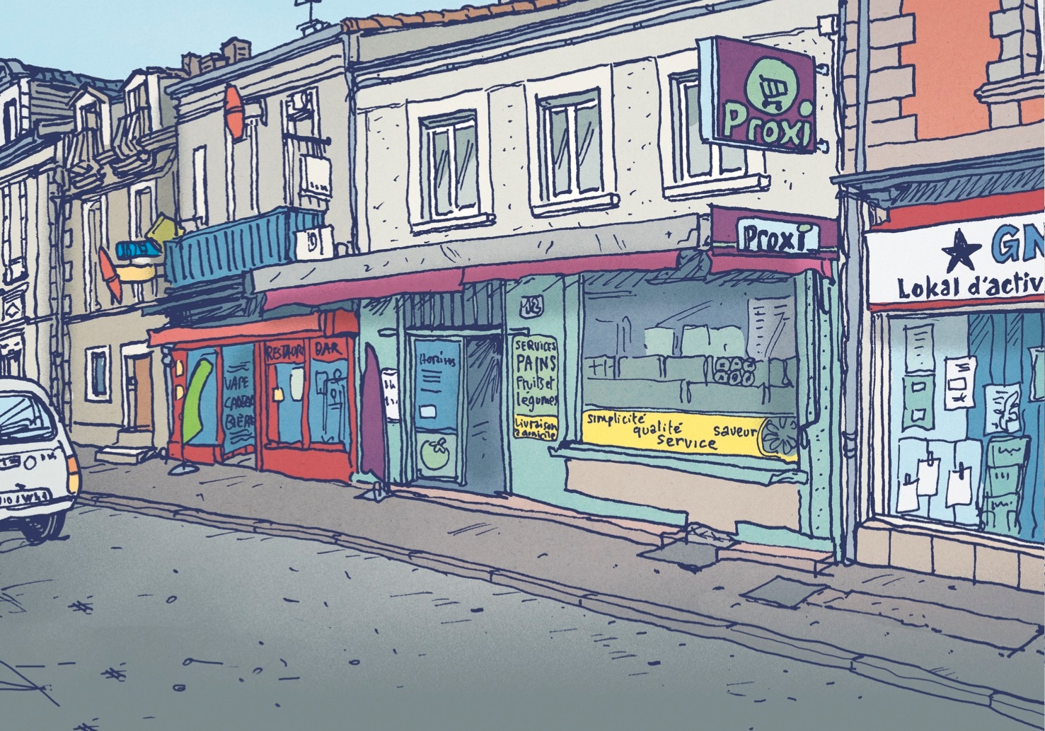 Périgueux. Sa cathédrale Saint-Front, sa tour de Vésone, son marché, sa passerelle Simone-Veil… et son quartier du Toulon. Entre 2022 et 2024, Laurent Lolmède a été accueilli par la Compagnie Ouïe/Dire dans le cadre du programme « Vagabondage 932 », une résidence expérimentale pluridisciplinaire dans les quartiers prioritaires du Grand Périgueux. Ainsi, l’auteur a exploré le quartier du Bas-Toulon qui, à l’époque de la Révolution industrielle, a poussé sur une ancienne plaine marécageuse. De cette résidence artistique sont nés une exposition (présentée au Musée d’Art et d’Archéologie du Périgord, dans le cadre du festival BD en Périgord de Bassillac-et-Auberoche) et ce bel album au format à l’italienne.
