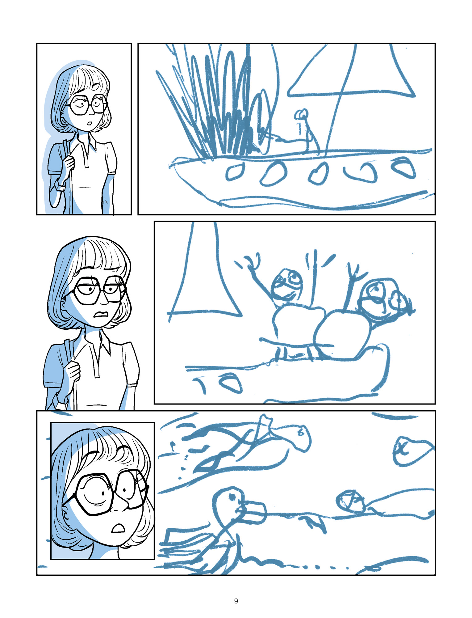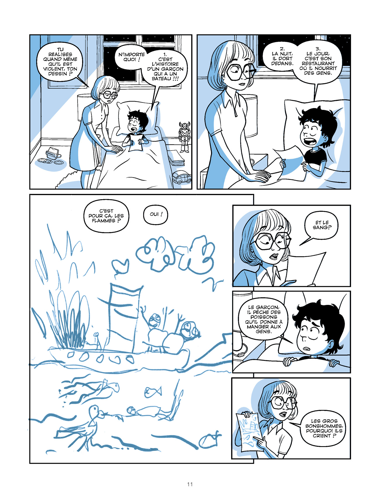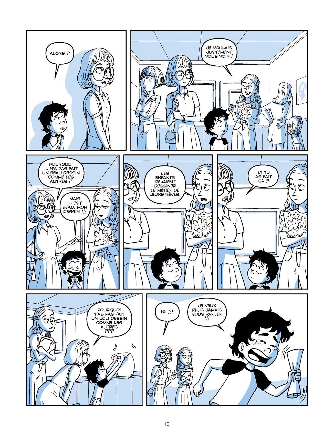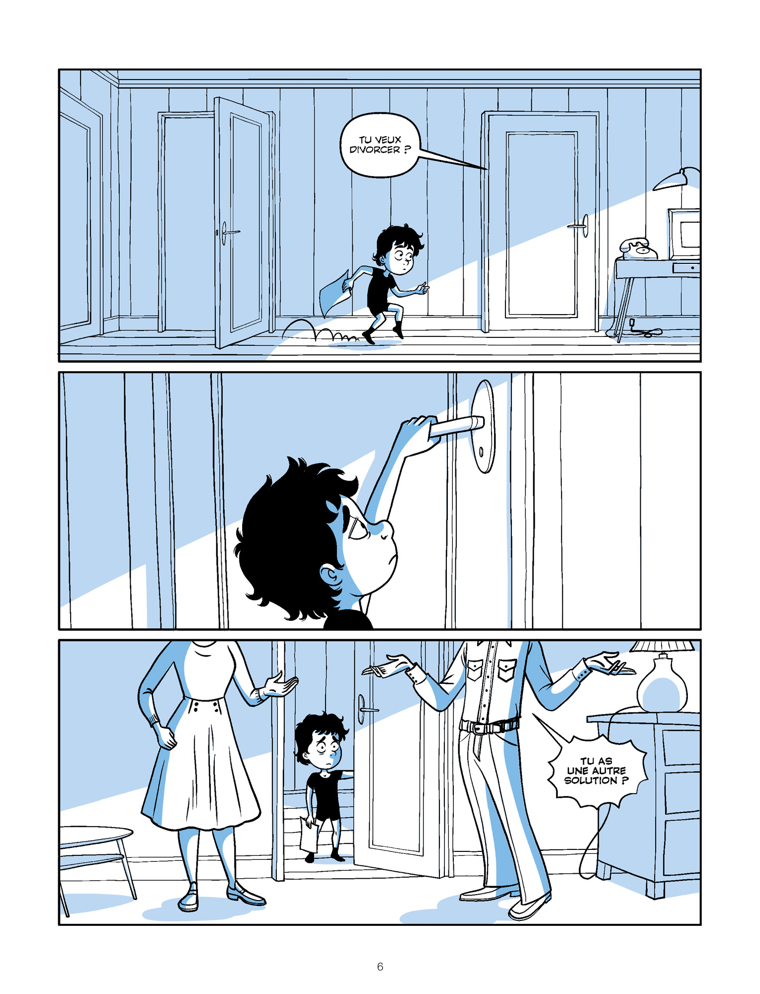 Comme tout bon plan qui se respecte, celui de Pacco est divisé en plusieurs parties bien distinctes. Les six chapitres sont composés de tranches de vie de l’auteur qui exposent sans langue de bois et avec beaucoup d’honnêteté ses doutes, ses erreurs, ses échecs mais aussi ses réussites et ses rêves. Chacun d’entre eux comporte une séquence “conseils pratiques” – qui ne manque pas d’intérêt ! – de deux planches qui se démarquent parfaitement des autres. Cet album, le plus intime réalisé à ce jour par Pacco, est traité avec beaucoup d’humour, de tendresse et d’amour/passion. Il se raconte très bien et dévoile avec pudeur des instants majeurs pour lui, comme la naissance de sa fille Maé ou sa rencontre – professionnelle et amoureuse – avec Margaux Mottin. Le style graphique rond utilisé par Pacco est beaucoup moins cartoon que dans ses autres productions et se rapproche de celui rencontré précédemment dans Toi & moi. L’équilibre entre cases détourées, épurées et vignettes beaucoup plus détaillées est parfait, une harmonie parfaitement rehaussée par une monochromie aux nuances de bleu délicatement posée par Drac.