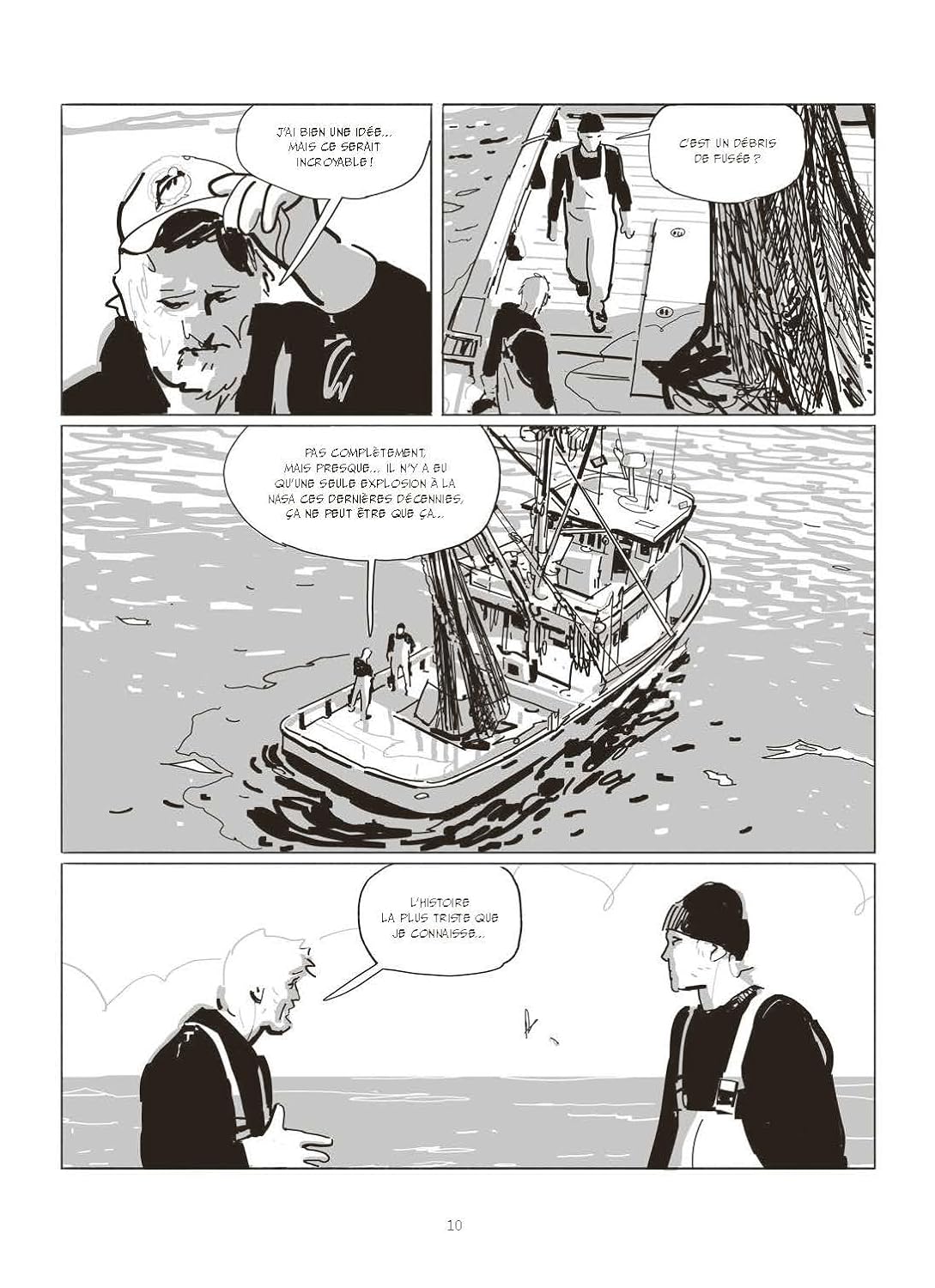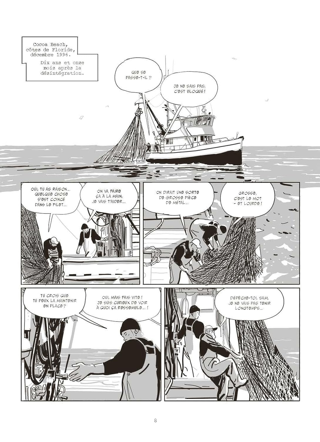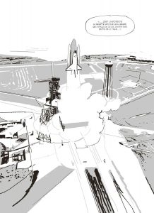 Quiconque a vécu, en direct ou non, ce dramatique événement ayant eu lieu il y a précisément 40 ans ne peut avoir oublié l’émotion ressentie face à cette explosion diffusée en direct sur toutes les télévisions du monde. A une époque où les lancements étaient encore des événements, le fait d’y voir des civils, notamment une enseignante devenue le visage de cette mission, le choc fut rude, tout comme les conséquences sur le programme spatial américain. Après avoir co-écrit La Bombe, Laurent-Frédéric Bollée relate une autre histoire avec le même souci du détail. Son travail est une fois de plus admirable, tant il relate le moindre détail sans troubler l’émotion qui s’en dégage. En remontant de manière inattendue mais pertinente à l’implication de l’actrice de Star Trek Nichelle Nichols dans le recrutement de l’agence spatiale américaine, le scénariste présente le contexte avec beaucoup de clarté. Chaque élément issu de l’enquête sur le drame est également finement inséré dans l’intrigue, ne nécessitant aucun dossier documentaire en fin d’album tant tout est clairement explicité à travers les dialogues ou les scènes. Si l’album est d’une pagination conséquente, la lecture reste d’une absolue fluidité, en particulier grâce au style de Cristiano Spadoni. Ce spécialiste italien du storyboard parvient ainsi avec un trait sobre, souvent juste esquissé, à capter l’essentiel. Ce qui serait insuffisant ou inabouti chez d’autres est étonnamment adéquat dans cette magnifique bande dessinée qui n’oublie jamais de traiter l’humain au cœur d’un gigantesque piège qui s’est refermé sur eux. Sans même parler du bouleversant épilogue, la séquence de Thanksgiving est à elle seule une formidable preuve de la maîtrise narrative des auteurs qui, sans surjouer l’émotion, la font apparaître avec un grand talent.